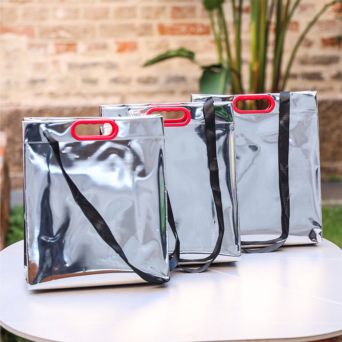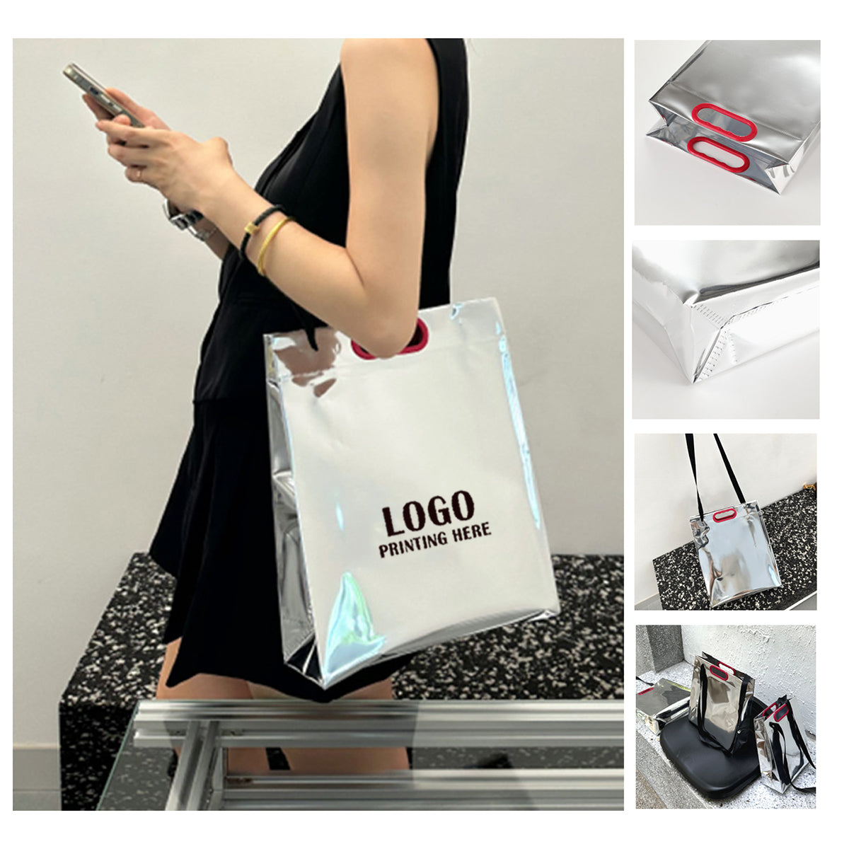 Introducing our Silver Laser favor bags, made from premium PVC for a sophisticated and glossy finish. These durable and reusable bags are more than just packaging; they're a fashionable accessory. Ideal for elevating any gift, these bags also function as elegant tote bags, infusing sophistication and distinctiveness into everyday use. Suited for parties, art exhibitions, or as a stylish gift bag, they can be customized with your logo, making them an excellent choice for brand promotions and special events. PCS/CTN:50 |