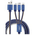 Promote your brand with this exciting tech item, a 3 in 1 braided Micro, Type C and Apple Lightning compatible charging cable that is over 40" long. It has an universal design with a Type C, a Micro USB and an Apple Lightning compatible adapter. The cord is nylon braided for premium durability. The longer middle gray plate is ideal to be imprinted or laser engraved with your logo or message. This safe and top quality cable can be used for phone and other portable device charging. It is a perfect give away accessory in today's tech environment and for everybody's personal daily use. PCS/CTN:50 |