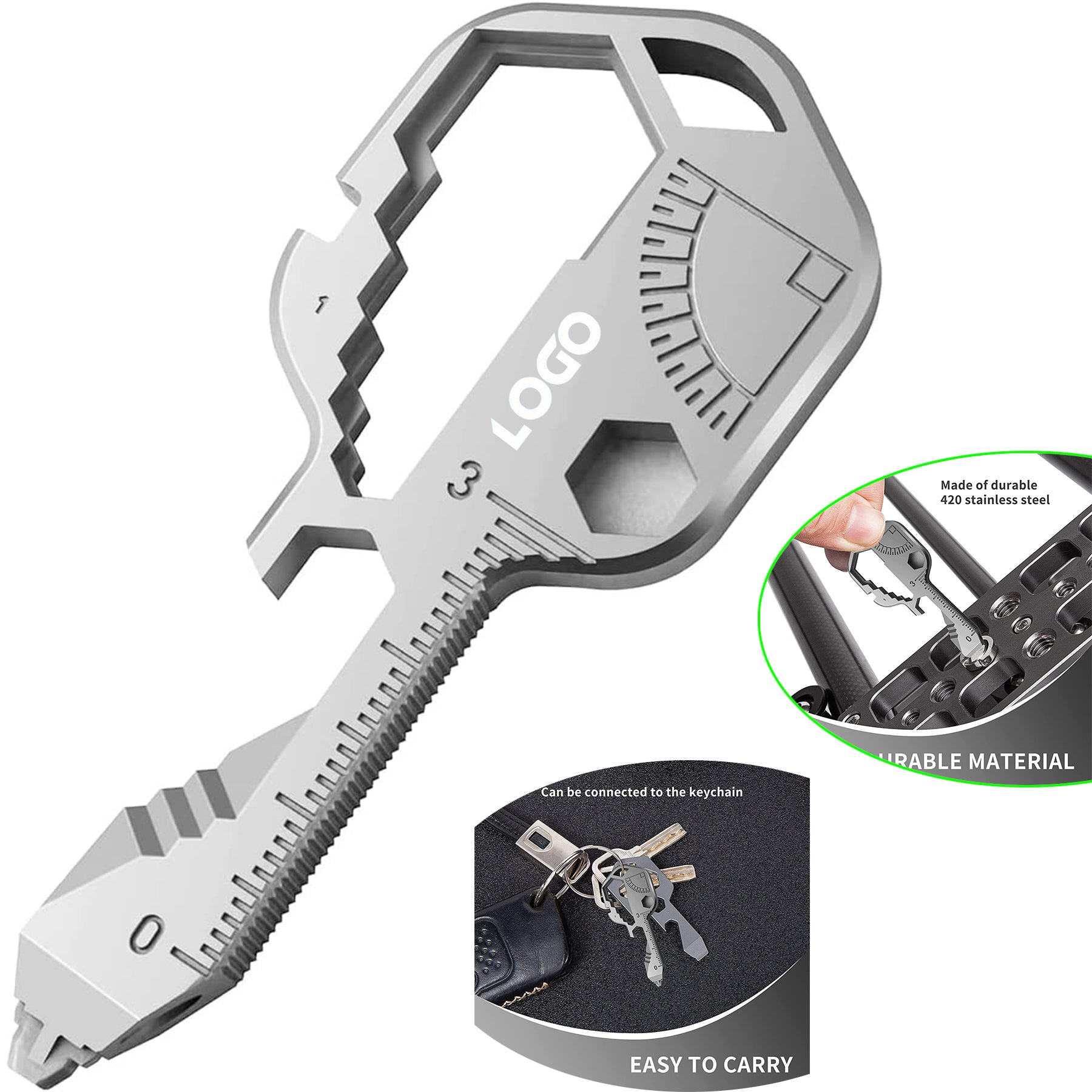 This 24-in-1 key tool combines 24 functions in a compact, durable design. It includes tools like a bicycle spoke key, screwdriver bits, open-end wrench, wire stripper, straightedge, projector, and bottle opener. Lightweight and made from 420 stainless steel, it's built to last and easy to carry daily. PCS/CTN:50 |