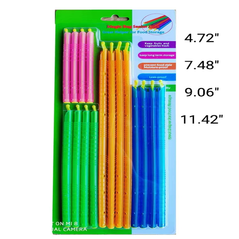 This Bag Clips CHANGE HOW YOU STORE FOOD : bag sealers slide across the entire food storage bag to keep air and moisture out. Say goodbye to stale food and freezer burn. EASY TO USE : Fold the bag over 1x and slide  across the bag.  4 sizes to seal everything from kids snacks to family size frozen vegetables. ECO FRIENDLY PRODUCTS : Unlike bulky food storage containers, reusable bag clips are small, compact, don't wear out and save you money with near zero waste. MULTI PURPOSE : If it’s in a bag, seal it or divide it into smaller sections / serving sizes. Great for marinating and meal prep. KID FRIENDLY : Zero sharp edges to cause cuts or scratches, zero small parts that can cause a choking hazard and no metal clips or springs to rust, weaken, or pinch little fingers.