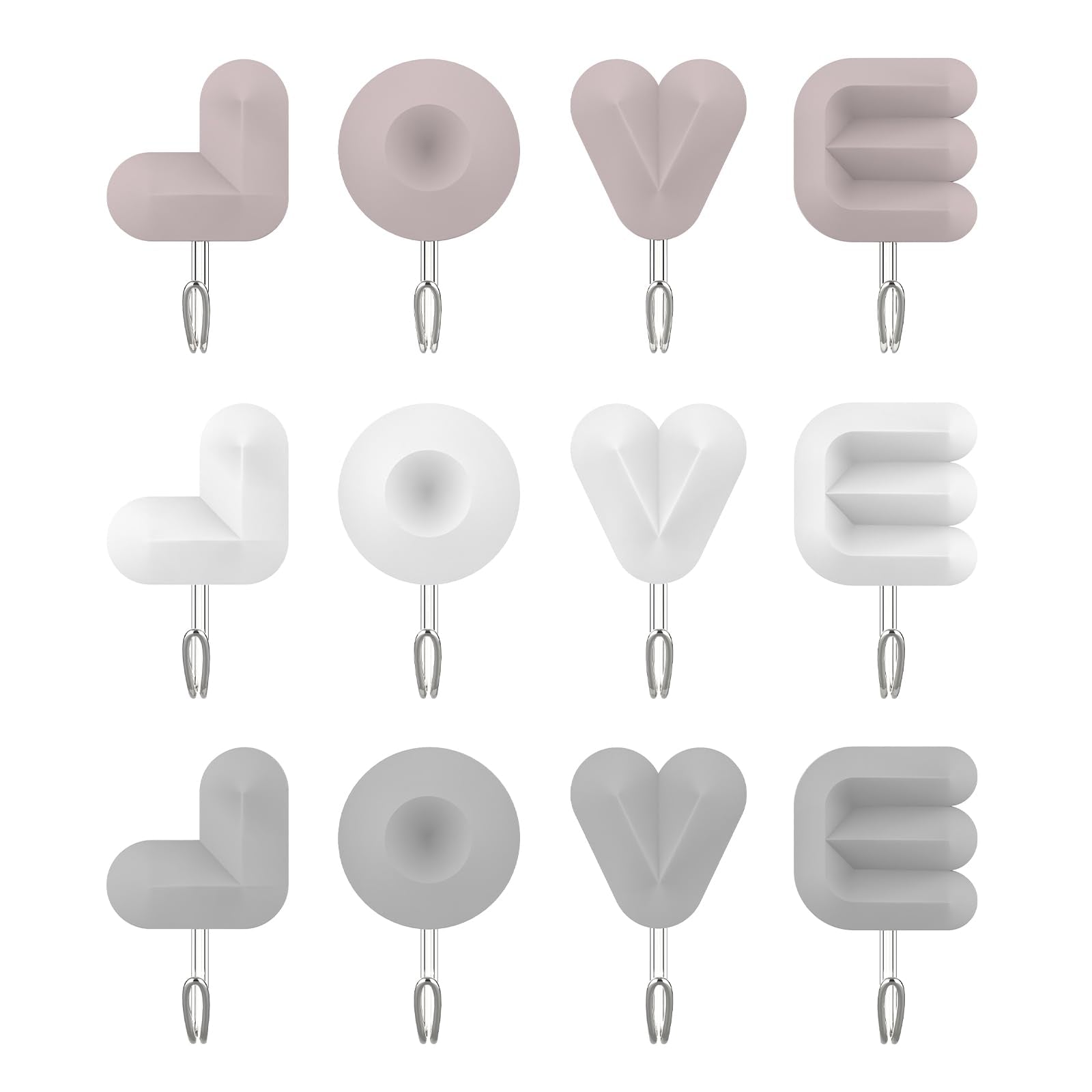 Sticky hooks composed of PS and metal, thickened material, waterproof, lightweight, with a long service life. Creative love letter hook is practical and adds to the beauty of the interior. Plastic hooks are easy to install, no drilling, no damage to the wall, strong adhesive backing, can be used after tearing, and firmly adhered. Heavy hook suitable for smooth walls, such as ceramic tiles, wood boards, glass, metal, marble, plastic, etc. Cute hooks suitable for kitchen, bedroom, bathroom, living room, used to store towels, keys, kitchen utensils, bath balls and other small things.