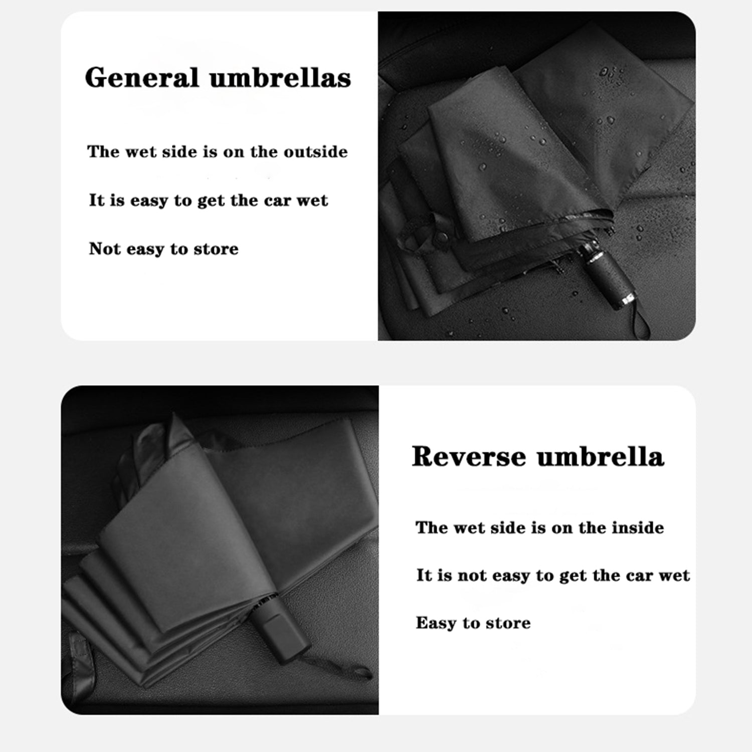 This upside down umbrella takes a inside-out design. When close it, the wet part will be inside of the umbrella, preventing water from dripping,and it will not get yourself wet when getting in and out of the car. You don't even need to worry about this automatic travel umbrella will wet your floor and mat.This reverse umbrella is easy to store in your car, your briefcases, backpacks, tavel bags etc. It is perfect for travel, business, camping, fishing, and daily use. Suitable for men and ladies.If you are interested in including your company's logo, brand name or information on it, please contact me and I will give you a satisfactory solution! PCS/CTN:50 |