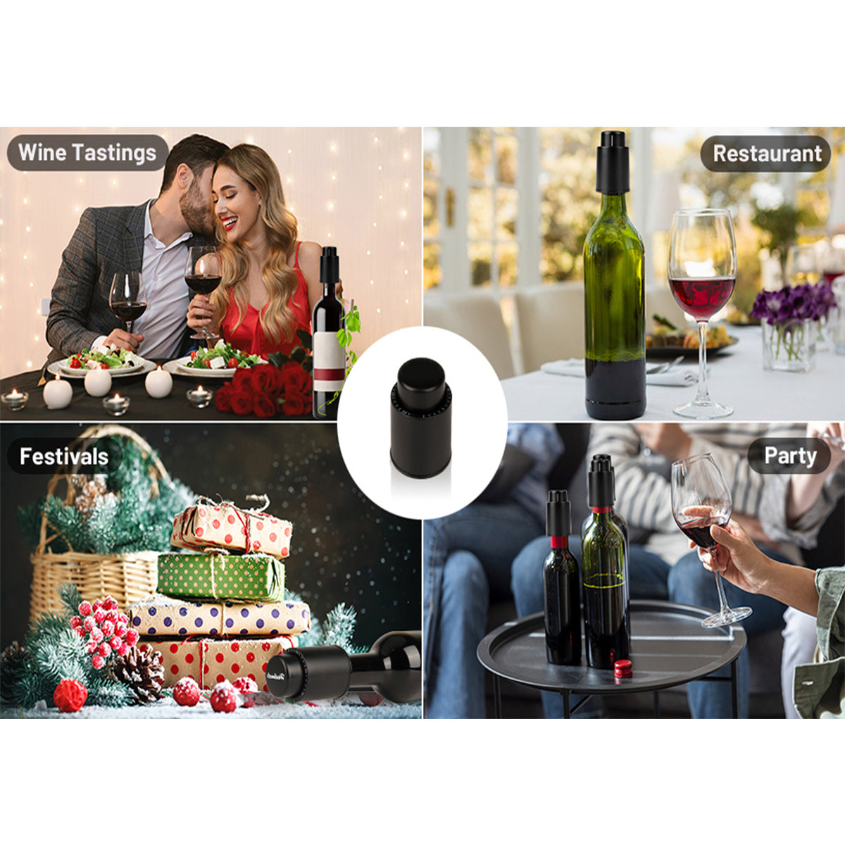 The Minimize wine oxidation by sucking the air out of the bottle. Just pump the vacuum wine stopper several times until it sucks itself tightly . This will help preserve your wine bottle flavor for weeks instead of just days. The perfect solution for your home, bar or restaurant.The vacuum rubber seal fits most wine bottles as well as others with similar characteristics. It preserves better than the original cork and prolongs the wine freshness.Great for a household, hotel, club, bar and more to use. Made from high quality and durable food-grade silicone inside and food grade ABS outside.
