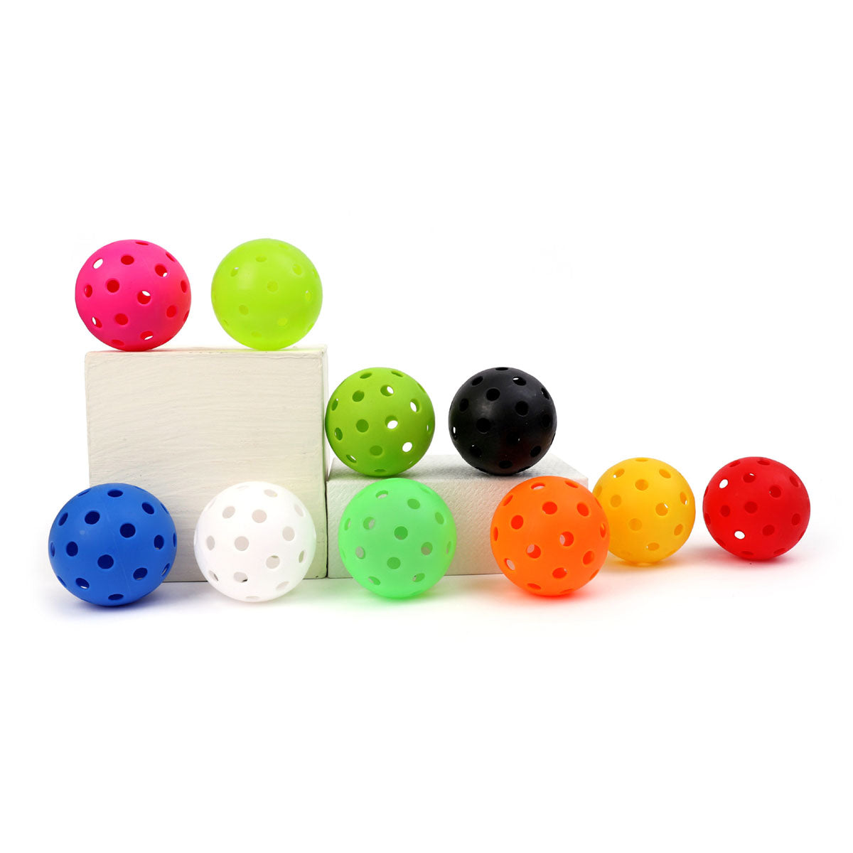 The product of 40 holes sports outdoor pickleballs are made of high elasticity plastic with advanced welding process, 40 precision-molded holes that minimize wind interference. These versatile balls are suitable for any court and can be used with a variety of racquets, such as fiberglass, graphite and wood racquets. The dimension measures 2.9'' Diameter. More color can be choosen or custom, Order them right now to suprise your customers with expanding awareness of brand. PCS/CTN:50 |