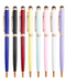 Aluminum twist action ballpoint pen with a soft touch stylus tip. The high gloss enamel color finish is accented by a color matching tech rubber stylus and finished off with sleek black tip, clip, and trim accents. The soft touch stylus is fully compatible with all capacitive touch screen devices such as: iPhone, iPad, Android, Samsung, Tablets, Smartphones, and much more!