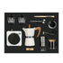 This MOKA pot set gift box includes an electric stove, 150ml moka pot, vacuum exhaust tank, coffee measuring spoon, adjustable coffee grinder, and 100 filter papers. Elevate your coffee experience with this all in one kit, perfect for home, office, or coffee shop use. Its sleek design and complete accessories make it an ideal gift for colleagues, friends, and family, ensuring every coffee moment is both convenient and sophisticated. |