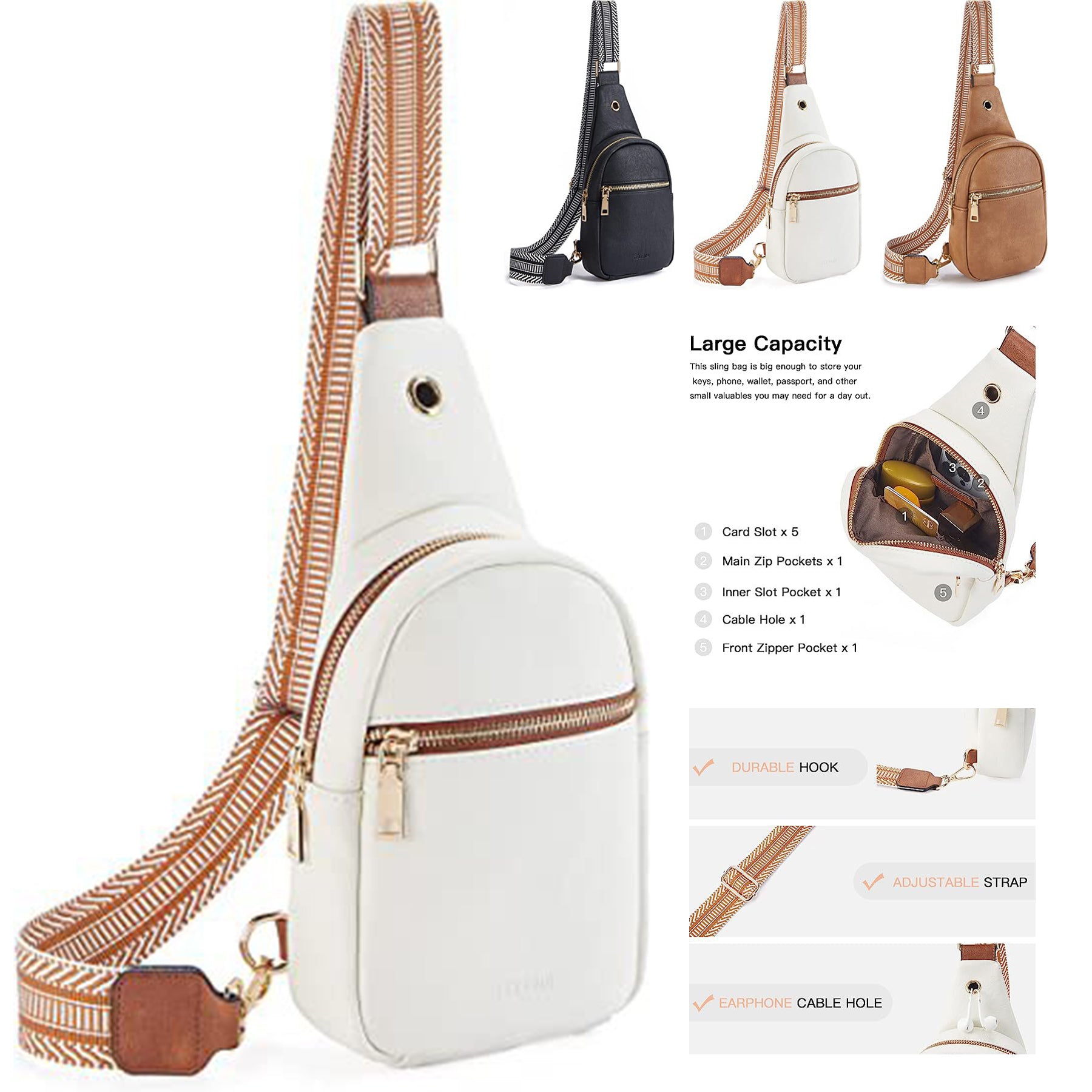 Diese kleine Umhängetasche mit 1 Hauptfach und 1 Frontfach mit Reißverschluss, 5 Kartenfächern und 1 Steckfach im Hauptfach mit Reißverschluss ist groß genug für Ihren Reisepass, Ihre Brieftasche, Ihr Telefon und andere kleine Wertsachen, die Sie für einen Tagesausflug benötigen, aber klein genug, um nicht sperrig zu sein. Das Hauptfach mit Reißverschluss hat 5 Kartenfächer, sodass Sie Ihre Karten bei Bedarf leicht finden können. Diese kleine Umhängetasche für Damen passt zu jeder Körperform und kann über der Schulter über der Brust oder dem Rücken getragen werden. Sie können sie als kleine Umhängetasche, Schultertasche oder Brusttasche oder sogar als Schultertasche verwenden. Die verstellbaren Riemen können Sie je nach Größe oder Aktivitätsbedarf enger oder weiter stellen. Die Länge des Schultergurts beträgt 78 bis 132 cm.