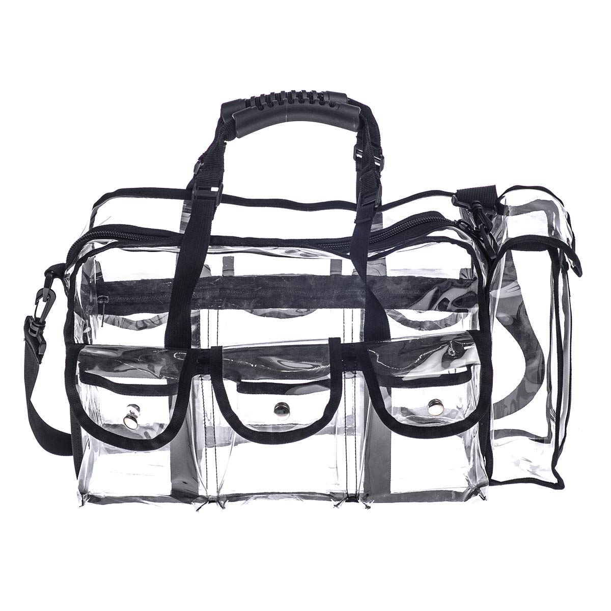 Robustes, durchsichtiges PVC-Material sorgt für Durchsicht und erleichtert das Auffinden aller Beauty-Accessoires. 6 aufklappbare Außentaschen mit Magnetverschluss zur Aufbewahrung verschiedener Dinge. Der Taschentuchhalter macht diese Tasche ideal für Maskenbildner. Geräumiges Hauptfach für große Werkzeuge und Make-up-Sets. Robuster Schultergurt und Griff aus Nylon. Mit dieser professionellen Set-Tasche transportieren Sie alle Ihre Reise-Make-up-Sets. Das ist Ihre beste Wahl.