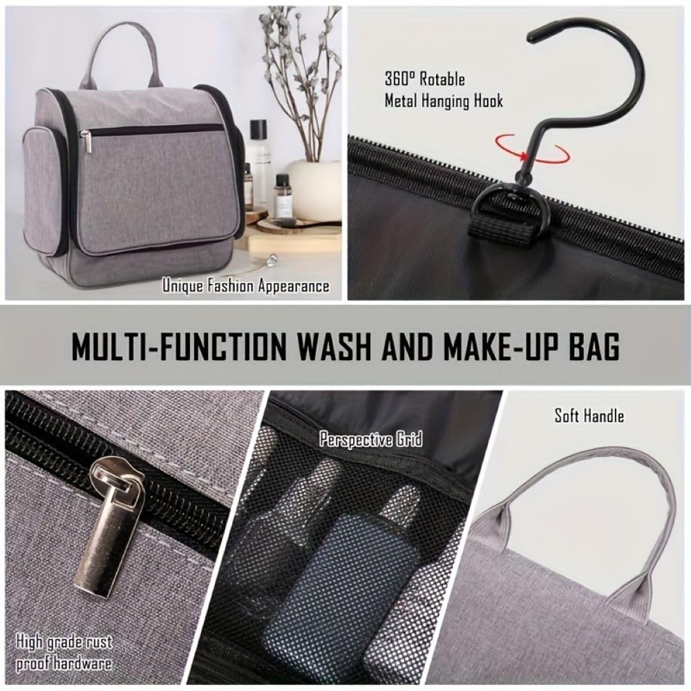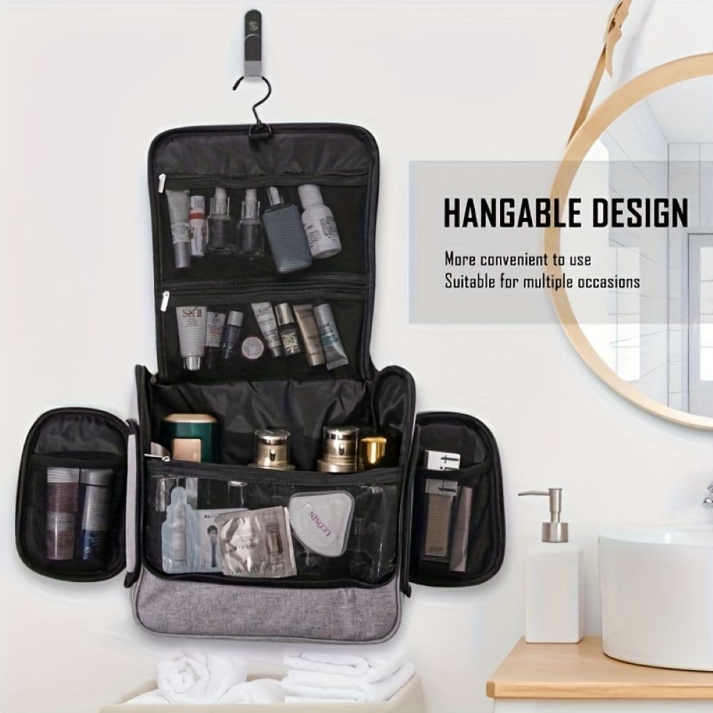 Unser hängender Reise-Kulturbeutel verfügt über mehrere vielseitige Fächer, in denen Sie alle Ihre großen Behälter ordentlich verstauen und darauf zugreifen können, darunter Shampoo, Spülung, Bürstenset und andere wichtige Reiseutensilien in voller Größe. Mit diesem ultimativen Kulturbeutel für Damen und Herren bleiben Sie unterwegs organisiert. Dieser Reise-Kulturbeutel aus hochwertigem, wasserabweisendem Nylon ist so konzipiert, dass er jedem Reiseabenteuer standhält. Ausgestattet mit robusten Reißverschlüssen und auslaufsicheren Fächern schützt er Ihre Sachen vor versehentlichem Verschütten und Feuchtigkeit und gewährleistet so eine lange Nutzungsdauer. Der tragbare Hänge-Organizer verfügt über einen praktischen Seitengriff, sodass er leicht zu tragen und aufzuhängen ist. Sein faltbares Design sorgt dafür, dass er in Ihrem Koffer nur minimalen Platz einnimmt.