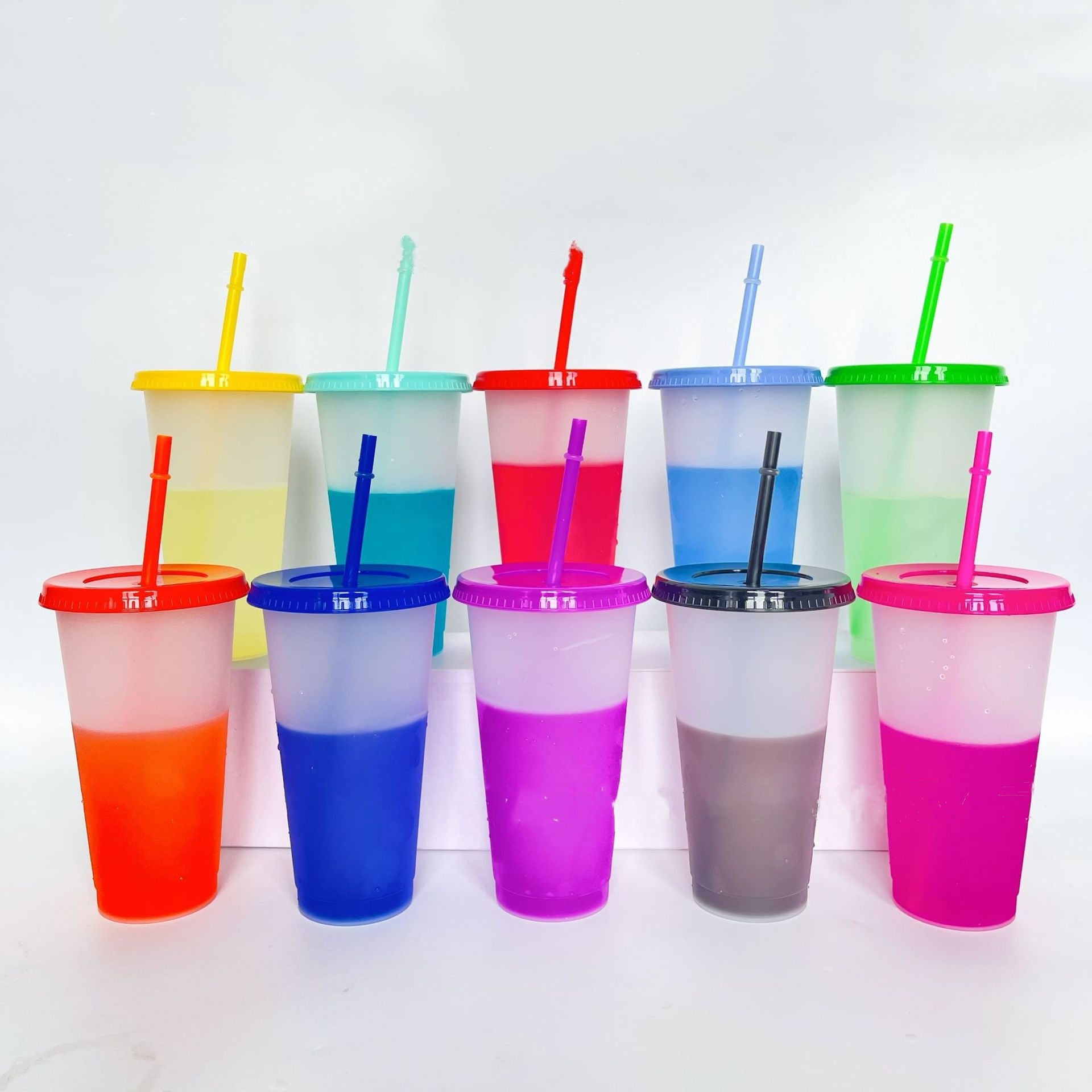 PP Ten Color Color Changing Cup Set Large Capacity 710ml Single Layer Cold Color Straw Cup 24OZ Color Plastic Cup for Heating Coffee Milk, Coffee Gifts for Women Men, Office Home Accessories PCS/CTN:50 |