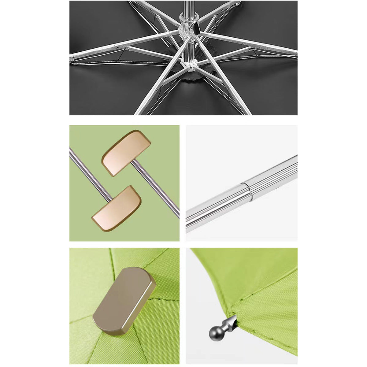 The umbrella frame is made of gold plated aluminum alloy rods and glass fiber at the tail, which is very strong, so that this umbrella can withstand heavy rain. The unique coating on the umbrella surface can effectively waterproof and dry quickly.Regardless of spring, summer, autumn and winter, ultraviolet rays are everywhere. Ultraviolet rays UVA and UVB are the main sources of skin aging and tanning. The umbrella surface is covered with the fifth-generation composite titanium gold sunscreen coating, which is made by high temperature technology, which can effectively block UVA and UVB, and the blocking rate of ultraviolet rays can reach 99%.