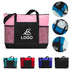 It is made of Denier polyester. Get your brand noticed with this stylish and functional tote. features a front pocket with pen loop, mesh pockets for water bottles and other easy to reach items. Your name will be front and center for the entire event as the attendees carry the tote around with them. 20"L x 14"H x 4"W. Get your brand noticed with this stylish and functional tote. Zippered main compartment provides ample storage capacity. Front pockets with pen loop (pen not included). Mesh pockets for water bottles (water bottle not included) and other easy to reach items.