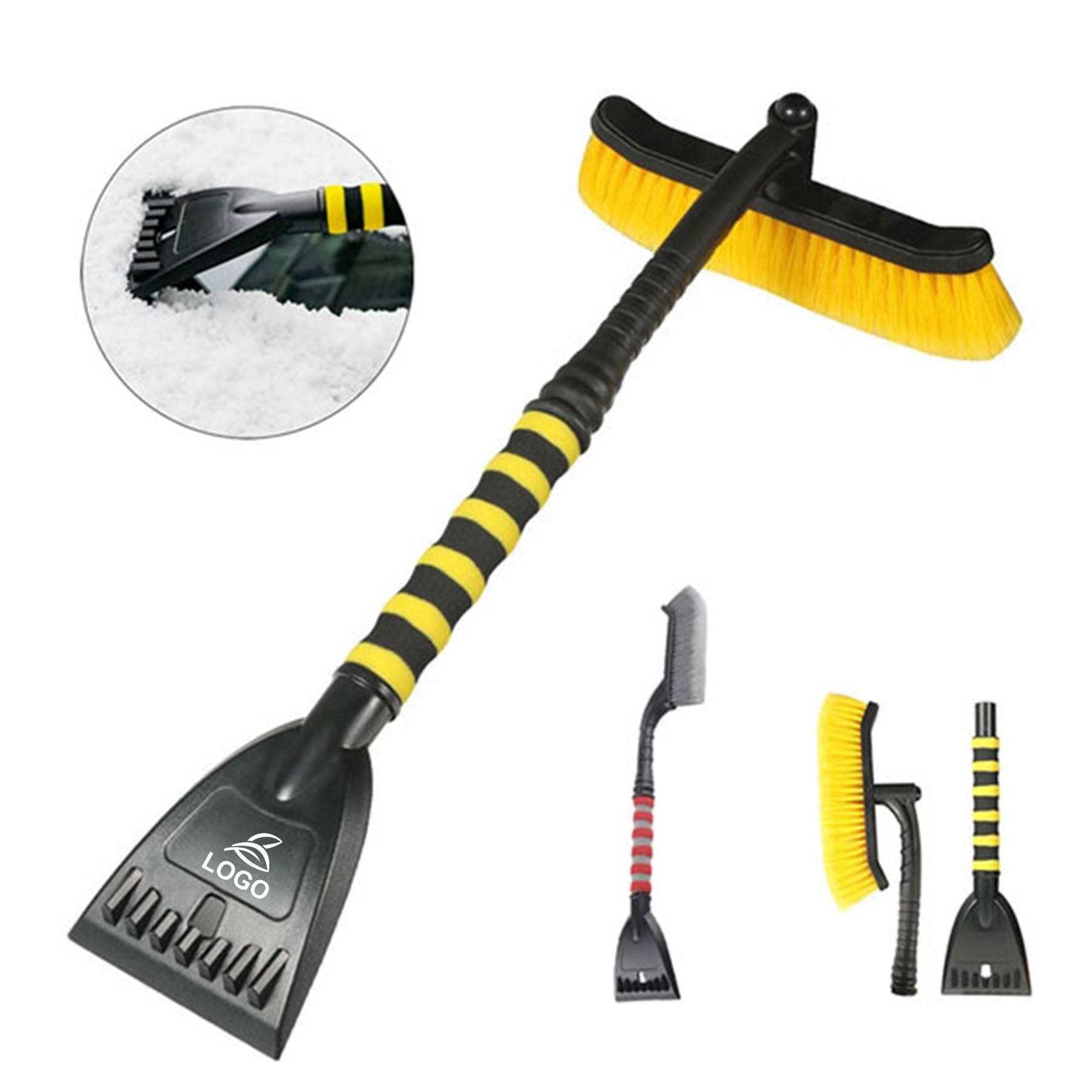 Mainly use abs plastic. Strong and sturdy. It can quickly help you brush off loose snow from car windshield, roof, door, hood, and side mirrors. Quickly separate the brush and scraper for easier handling or dividing up work; stores easily both while connected and detached.Lon.G winters are tough. The soft-to-touch, ergonomic handle is tougher. It won't crack and will provide you comfort all winter. Print your logo and order today.