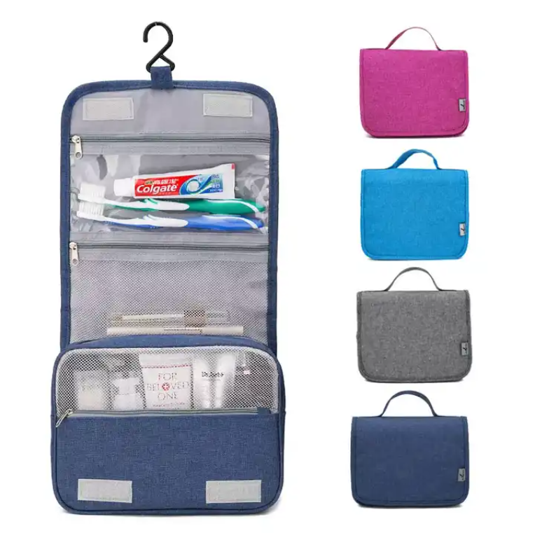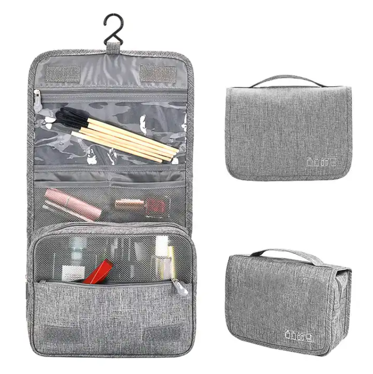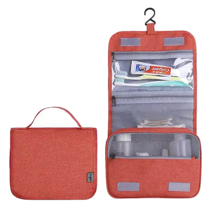 This multi-function foldable travel bag is durable and tear-resistant. One main compartment with several pockets neatly organized your large/small skin-care products, cosmetics, lotion, shampoo, conditioner, toothbrushes and other items. Waterproof and durable fabric protects your gear from spills and scratches.It makes you easy to sort and store small toiletries. The special hanging design is ideal for travel. it is a great choice for business trips, travel, gym, camping, home use and more. With your logo on it, that would be a very practical gift for your clients.