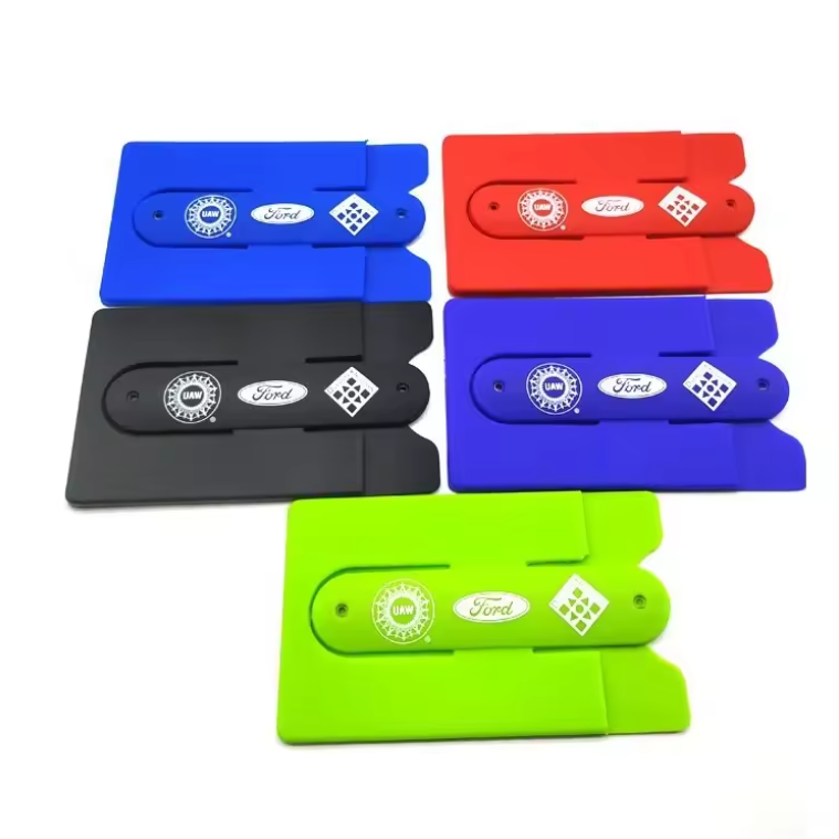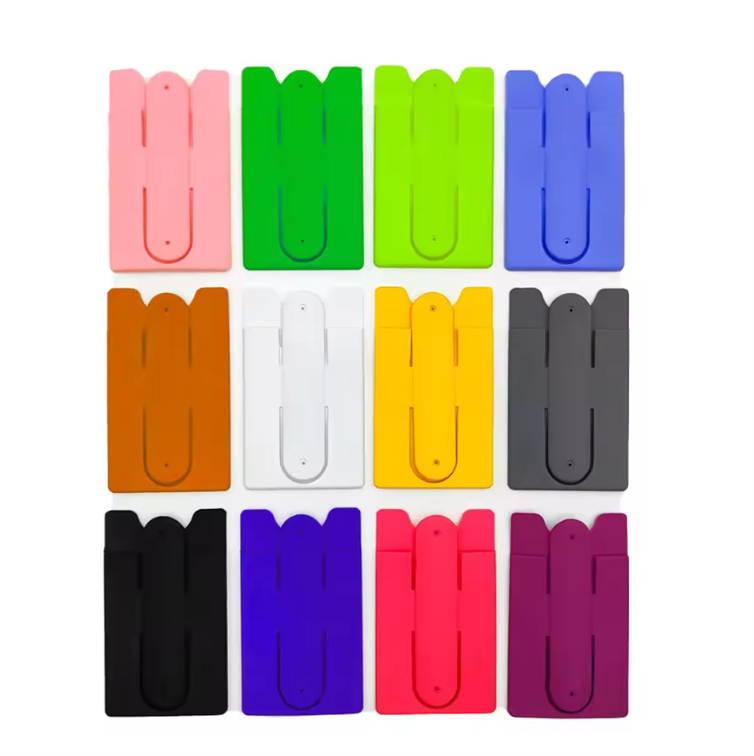 Silicone pocket with one-touch instant stand snap. Removable adhesive sticks to the back of cell phone or your mobile device. Holds credit cards, driver's license, business cards, stylus, coins or other small personal items.