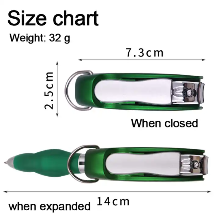 This multifunction ballpoint pen with a Nail Clippers is made of stainless steel, which writes smoothly with black ink. It is really a versatile mini combination tool. In addition to writing functions, as well as nail scissors and keychains. With Compact, durable and convenient feaure, this ball pen brings more interests to life and study. An essential note-taking tool, ideal for school, office, corporate gift, travel, camping and self-promotion. Perfect for pairing with your company name and logo.