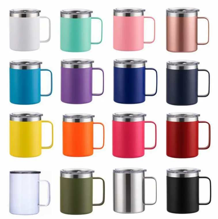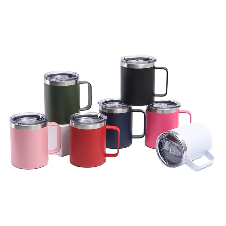 The Camper 14 oz. 18/8 double walled stainless steel vacuum sealed mug It will keep your hot drinks hot for 8 hours for those cold evenings under the stars and your cold drinks cold for 12 hours. This mug is convenient to use, has a handle and is compatible with most single serve coffee machines. It features a clear, push-in lid and is FDA compliant and BPA free.
