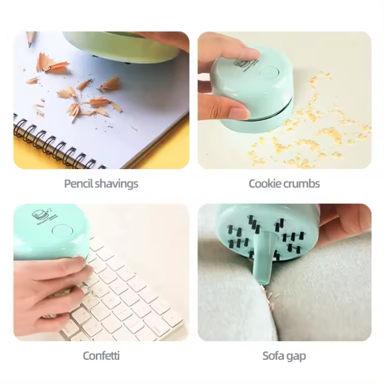 Our vacuum cleaner is an ergonomic and useful solution for your cleaning needs. You can easily reach any corners and crevices when cleaning the space between large, hard-to-move objects. Switch to battery power with 2 AA batteries (not included), so you can use the mini vacuum anywhere! Cordless convenience helps you get rid of the annoying cord, and you don't need to plug and change the plug frequently. Just hold and move it with your hands; students and the elderly can also easily operate it. Our table cleaner can avoid annoying little messy lives and clean houses and cars. Our desktop vacuum cleaners are made of high-quality transparent plastic acrylic. More powerful and safer.