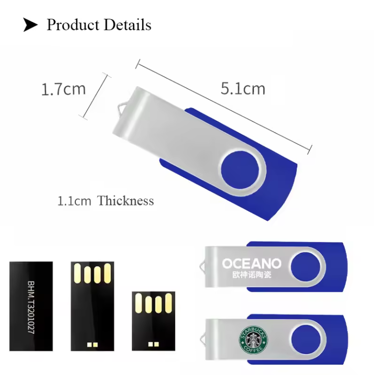 The USB flash drive is plug and play, no require for installing a driver. This USB drive is able to fold inside a metal protective covering to keep your important information safe while also making your flash drive easily accessible. Support custom USB flash drive for other storage sizes. Add your company name or logo for maximum visibility. Make your business stand out from the crowd!